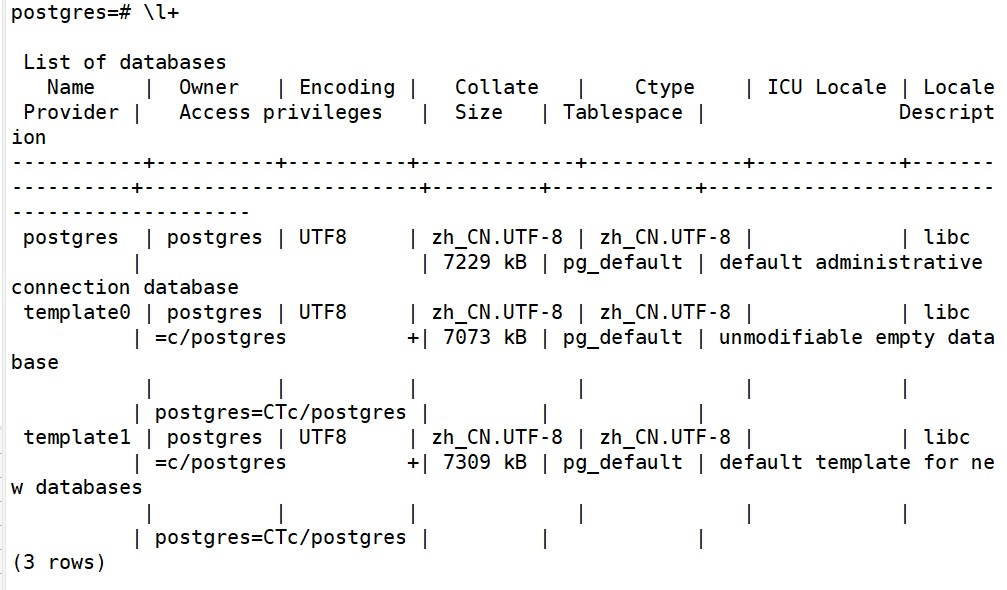 \l+的输出比\l多了Size,Tablespace 和Description 列