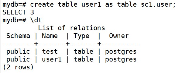 如果创建对象(表、视图等)时不指定模式,默认会放在 public 模式中。