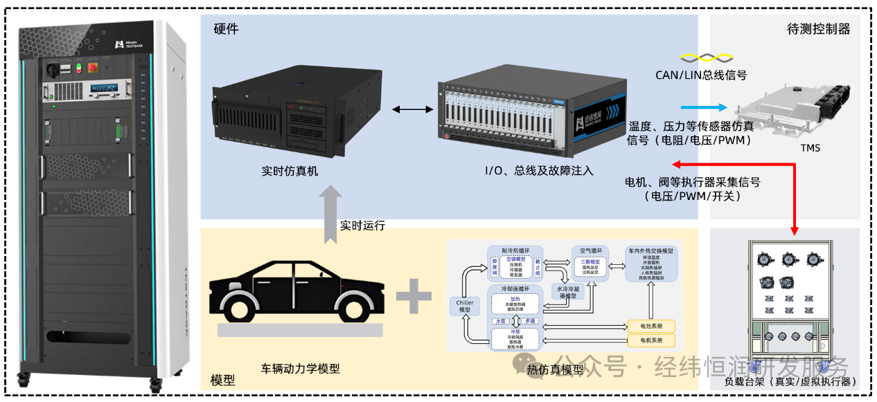 针对以上开发测试难点,经纬恒润基于硬件在环(HIL)仿真技术为用户提供更为简单、高效并且多样的测试验证手段,以帮助用户全面提高整车热管理研发效率及测试能力。