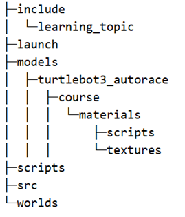 cp ~/catkin_ws/src/turtlebot3_simulation/turtlebot3_gazebo/models/* ~/catkin_ws/src/learning_topic/models/ ---------------0course.launch Beg----------------<launch><env name="GAZEBO_RESOURCE_PATH" value="$(find learning_topic)/models/turtlebot3_autorace/ground_picture" /><arg name="model" default="$(env TURTLEBOT3_MODEL)" doc="model type [burger, waffle, waffle_pi]"/><arg name="x_pos" default="0.0"/><arg name="y_pos" default="0.0"/><arg name="z_pos" default="0.0"/><include file="$(find gazebo_ros)/launch/empty_world.launch"><arg name="world_name" value="$(find learning_topic)/worlds/course.world"/><arg name="paused" value="false"/><arg name="use_sim_time" value="true"/><arg name="gui" value="true"/><arg name="headless" value="false"/><arg name="debug" value="false"/></include><param name="robot_description" command="$(find xacro)/xacro $(find turtlebot3_description)/urdf/turtlebot3_$(arg model).urdf.xacro" /><node pkg="robot_state_publisher" type="robot_state_publisher" name="robot_state_publisher"><param name="publish_frequency" type="double" value="30.0" /></node><node pkg="gazebo_ros" type="spawn_model" name="spawn_urdf" args="-urdf -model turtlebot3_$(arg model) -x $(arg x_pos) -y $(arg y_pos) -z $(arg z_pos) -param robot_description" />