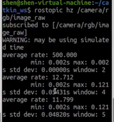 rostopic hz /camera/rgb/image_raw # 能看到图片信息的反馈