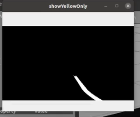 class Follower:def __init__(self):self.bridge = cv_bridge.CvBridge() #创建CvBridge对象self.image_sub=rospy.Subscriber('/camera/rgb/image_raw',Image,self.image_callback)# 函数变量分别为:接受节点 、 接受消息类型、 回调函数def image_callback(self,msg):image = self.bridge.imgmsg_to_cv2(msg)if(image.all()!=None):hsv = cv2.cvtColor(image, cv2.COLOR_BGR2HSV)# 进行消息-> rgb -> hsv格式变量 的两步转换lower_yellow = numpy.array([20,43,46])upper_yellow = numpy.array([90,255,255])# 建立蒙版参量 参量使用指针格式(inRange函数的要求)mask = cv2.inRange(hsv, lower_yellow, upper_yellow)masked = cv2.bitwise_and(image,image,mask=mask)# 使用蒙版进行二值化 bitwisecv2.namedWindow("showYellowOnly",cv2.WINDOW_NORMAL)cv2.imshow("showYellowOnly",mask) #进行显示cv2.waitKey(3)rospy.init_node('follower',anonymous = True)
