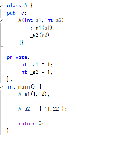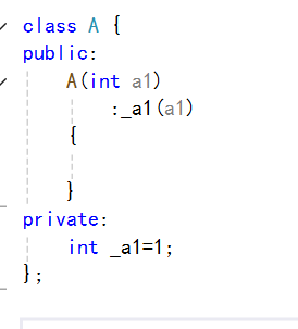 当我们给一个类对象缺省值的时候,和我们在初始化列表的方式差不多。