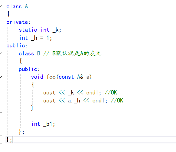 6、友元类的关系是单向的,不具有交换性,比如A是B的友元,不过B不是A的友元。
