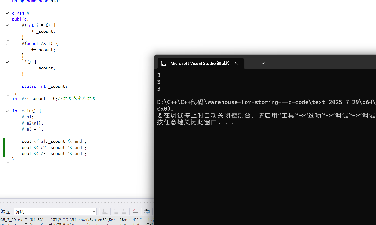 在构造和拷贝构造的情况下,那么我们的计数变量就进行+1,析构的话就-1。那么我们该如何访问这个成员变量呢?