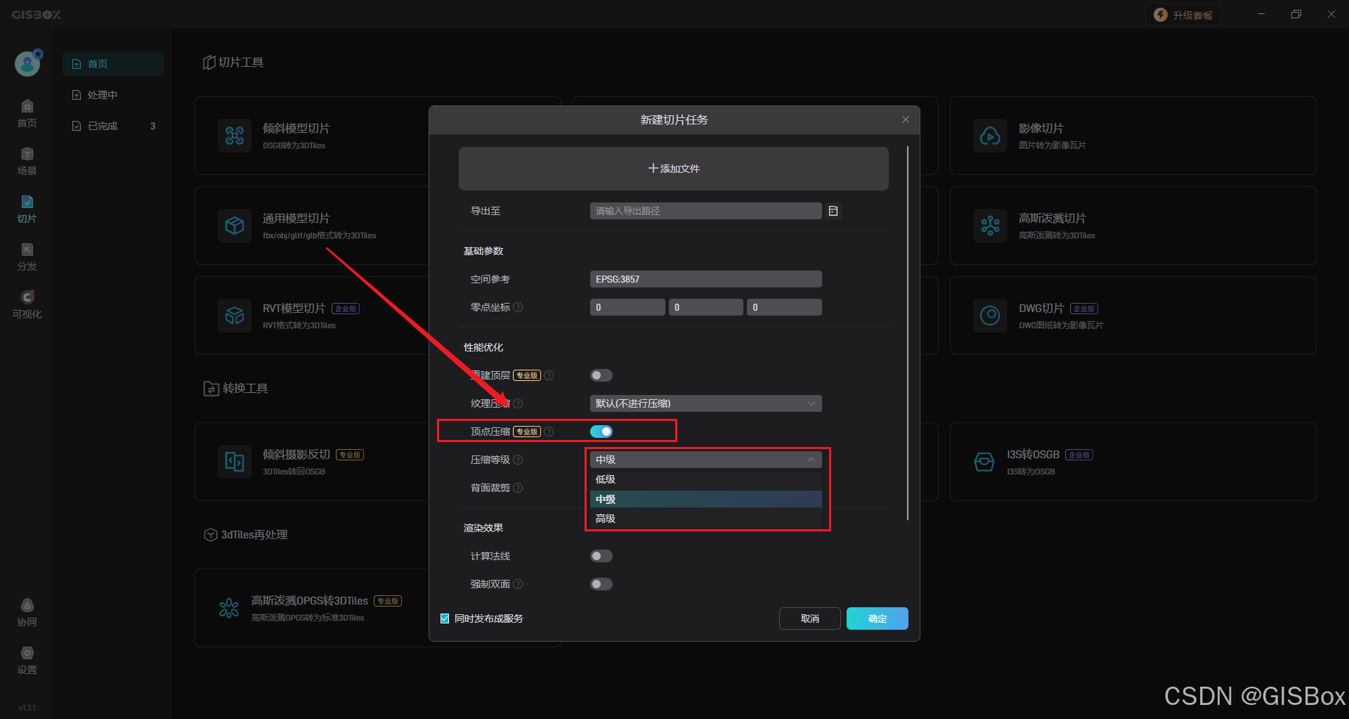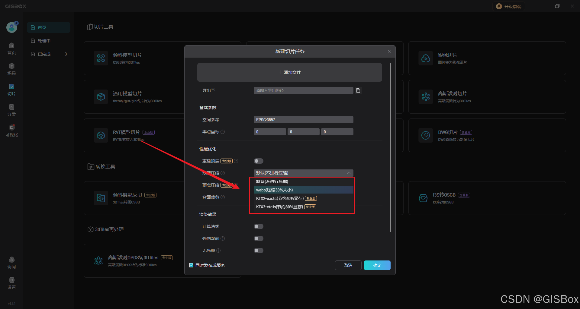 在GISBox中,”纹理压缩“和”顶点压缩“功能是一项关键技术,对于提升三维模型加载速度、降低存储成本以及实现跨平台兼容具有重要意义。
