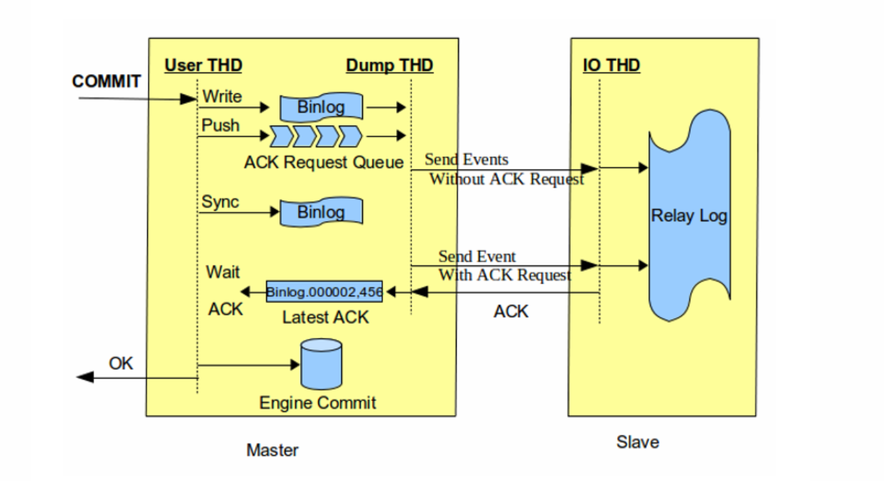 AFTER_COMMIT | 主库先提交事务,再等待从库 ACK,存在“主库已提交但从库未同步”的风险。 |