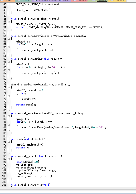 实现串口初始化、发送(字节/数组/字符串/数字/格式化数据/数据包)、接收中断处理等底层功能。