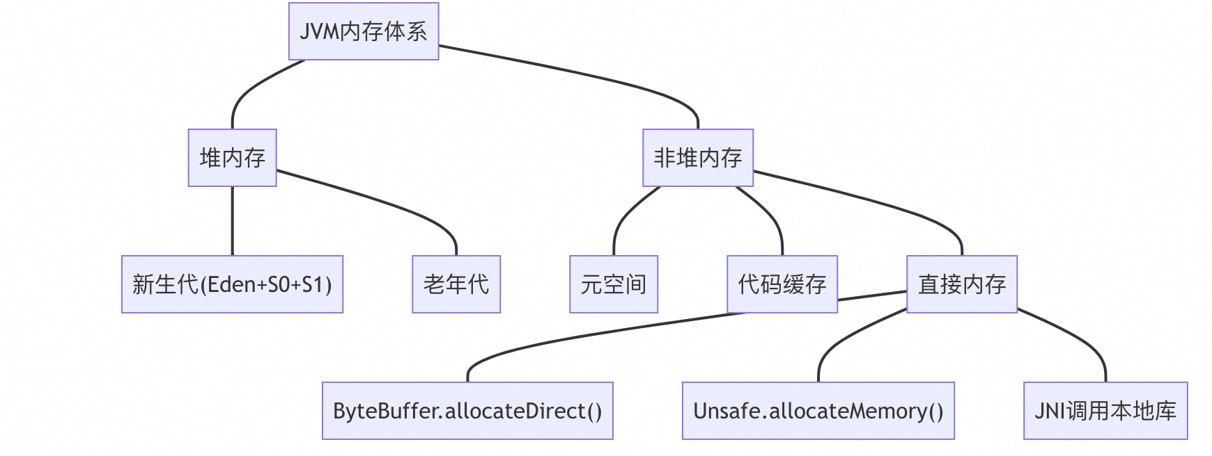 直接内存(Direct Memory)是不受JVM垃圾回收器(GC)直接管理的内存。在系统内存和Java堆内存之间开辟出的一块共享区域,供操作系统和Java代码访问。