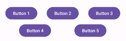 <androidx.constraintlayout.widget.ConstraintLayoutxmlns:android="http://schemas.android.com/apk/res/android"xmlns:app="http://schemas.android.com/apk/res-auto"android:layout_width="match_parent"android:layout_height="match_parent"><androidx.constraintlayout.helper.widget.Flowandroid:id="@+id/flow"android:layout_width="0dp"android:layout_height="wrap_content"app:constraint_referenced_ids="btn1,btn2,btn3,btn4,btn5"app:flow_wrapMode="chain"app:flow_horizontalGap="8dp"app:flow_verticalGap="8dp"app:layout_constraintTop_toTopOf="parent"app:layout_constraintStart_toStartOf="parent"app:layout_constraintEnd_toEndOf="parent"/><Buttonandroid:id="@+id/btn1"android:layout_width="wrap_content"android:layout_height="wrap_content"android:text="Button 1"/><Buttonandroid:id="@+id/btn2"android:layout_width="wrap_content"android:layout_height="wrap_content"android:text="Button 2"/><Buttonandroid:id="@+id/btn3"android:layout_width="wrap_content"android:layout_height="wrap_content"android:text="Button 3"/><Buttonandroid:id="@+id/btn4"android:layout_width="wrap_content"android:layout_height="wrap_content"android:text="Button 4"/><Buttonandroid:id="@+id/btn5"android:layout_width="wrap_content"android:layout_height="wrap_content"android:text="Button 5"/></androidx.constraintlayout.widget.ConstraintLayout>图示