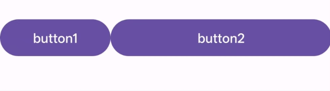 <androidx.constraintlayout.widget.ConstraintLayoutxmlns:android="http://schemas.android.com/apk/res/android"xmlns:app="http://schemas.android.com/apk/res-auto"android:layout_width="match_parent"android:layout_height="match_parent"><Buttonandroid:id="@+id/button1"android:layout_width="0dp"android:layout_height="wrap_content"app:layout_constraintHorizontal_weight="1"app:layout_constraintLeft_toLeftOf="parent"app:layout_constraintRight_toLeftOf="@id/button2"android:text="button1"/><Buttonandroid:id="@+id/button2"android:layout_width="0dp"android:layout_height="wrap_content"app:layout_constraintHorizontal_weight="2"app:layout_constraintLeft_toRightOf="@id/button1"app:layout_constraintRight_toRightOf="parent"android:text="button2"/></androidx.constraintlayout.widget.ConstraintLayout>