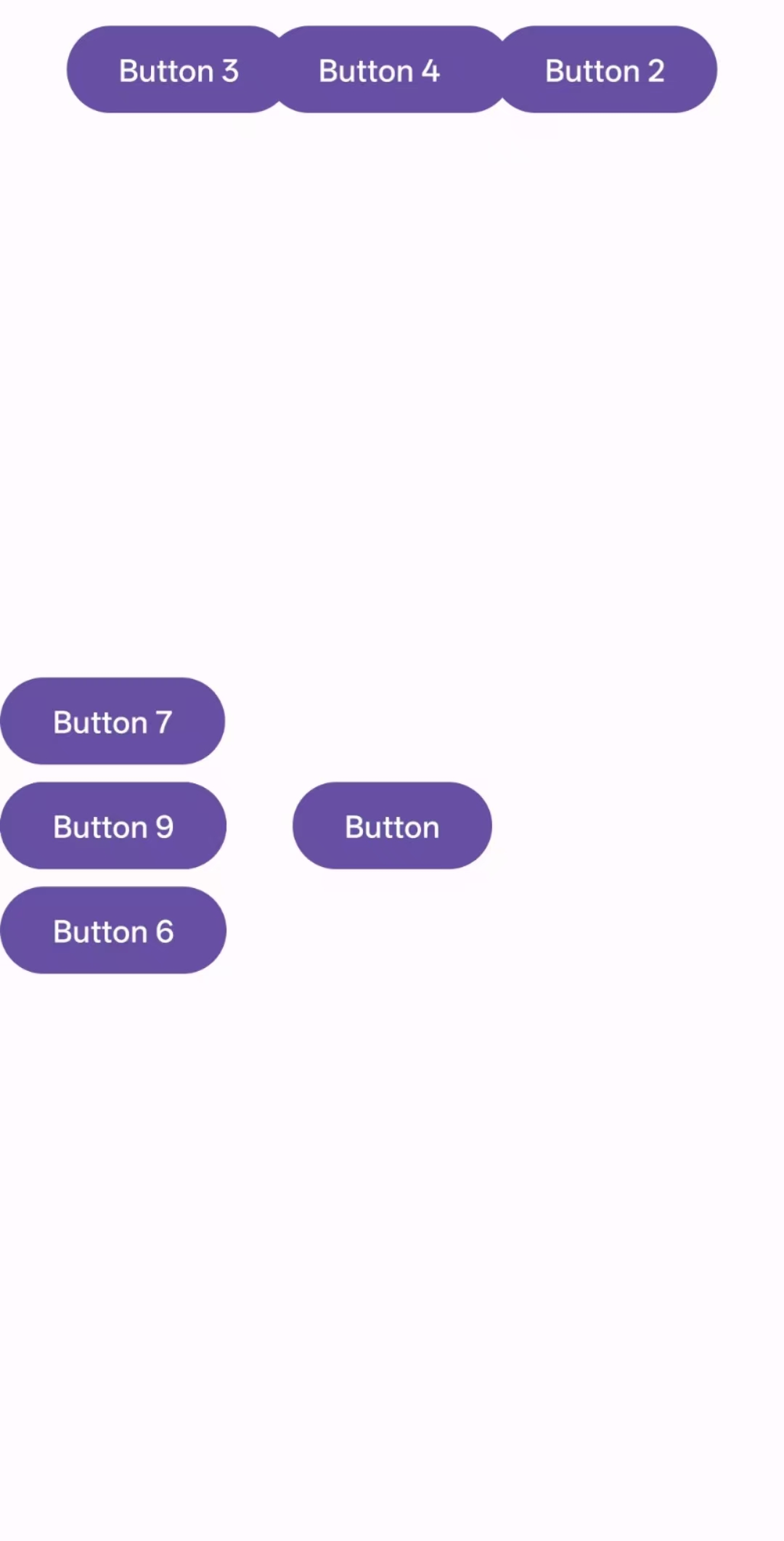 <androidx.constraintlayout.widget.ConstraintLayoutxmlns:android="http://schemas.android.com/apk/res/android"xmlns:app="http://schemas.android.com/apk/res-auto"android:layout_width="match_parent"android:layout_height="match_parent"><androidx.constraintlayout.helper.widget.Flowandroid:layout_width="wrap_content"android:layout_height="0dp"app:constraint_referenced_ids="btn1,btn2,btn3"app:flow_wrapMode="aligned"app:flow_verticalStyle="packed"app:flow_verticalGap="16dp"app:layout_constraintStart_toStartOf="parent"app:layout_constraintTop_toTopOf="parent"app:layout_constraintBottom_toBottomOf="parent"/><Buttonandroid:id="@+id/btn1"android:layout_width="wrap_content"android:layout_height="wrap_content"android:text="Button 1"/><Buttonandroid:id="@+id/btn2"android:layout_width="wrap_content"android:layout_height="wrap_content"android:text="Button 2"/><Buttonandroid:id="@+id/btn3"android:layout_width="wrap_content"android:layout_height="wrap_content"android:text="Button 3"/></androidx.constraintlayout.widget.ConstraintLayout>图示