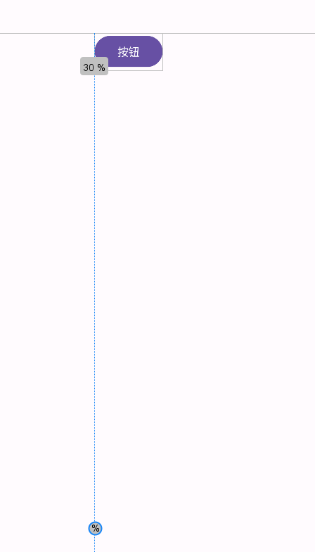 <androidx.constraintlayout.widget.Guidelineandroid:id="@+id/guideline"android:layout_width="wrap_content"android:layout_height="wrap_content"android:orientation="vertical"app:layout_constraintGuide_percent="0.3"/><Buttonandroid:layout_width="wrap_content"android:layout_height="wrap_content"android:text="按钮"app:layout_constraintLeft_toLeftOf="@id/guideline"/>图示: