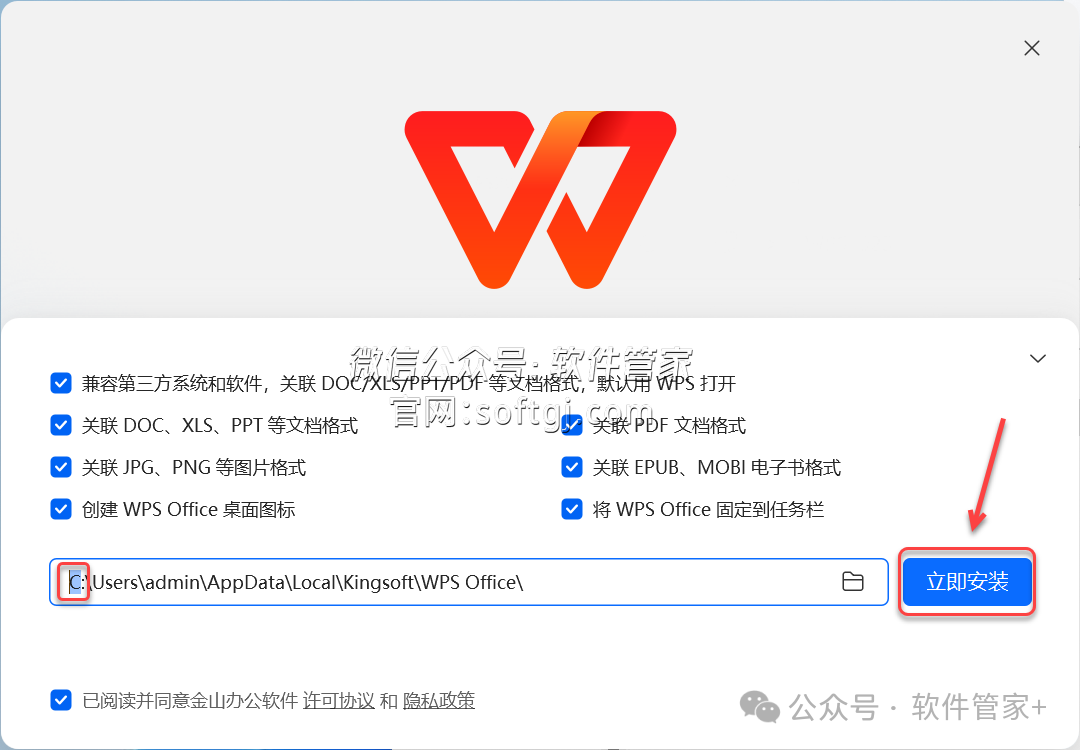4.修改路径地址中的第一个字符C可更改安装位置(如:把C改为D软件将安装到D盘),点击【立即安装】。