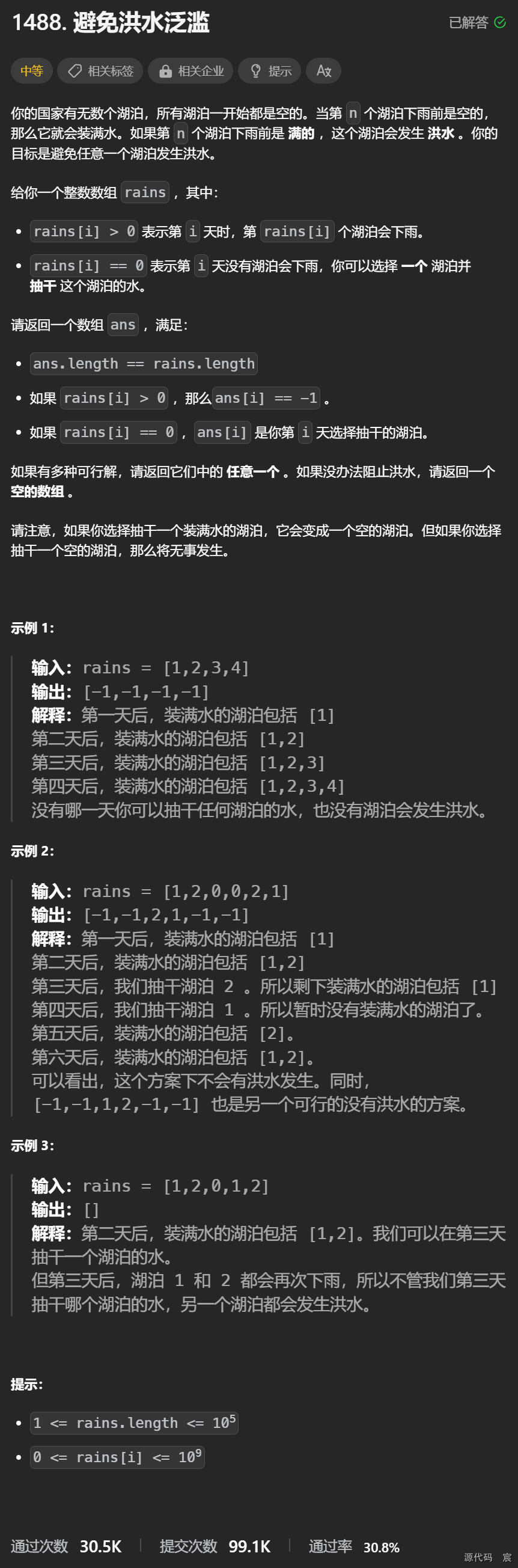 Leetcode—1488.避免洪水泛滥【中等】