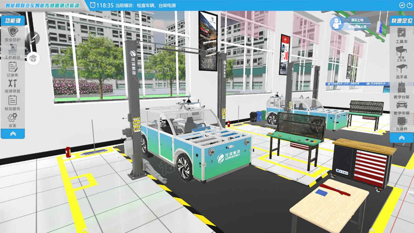 智能网联汽车智能传感器测试装调仿真教学软件是依托智能网联汽车自主开发的一款仿真教学软件。软件采用仿真技术模拟实际的智能网联汽车智能传感器测试装调的过程,利用仿真技术模拟实际的安全准备、检查车辆台架电源、安装毫米波雷达、联机调试、断开车辆台架电源、拆卸毫米波雷达、完工操作等各作业流程,为学生提供展开自主探索学习的实训平台;系统智能评分,综合管理及评价,帮助教师准确掌握学生的学习情况,提高教学效率。