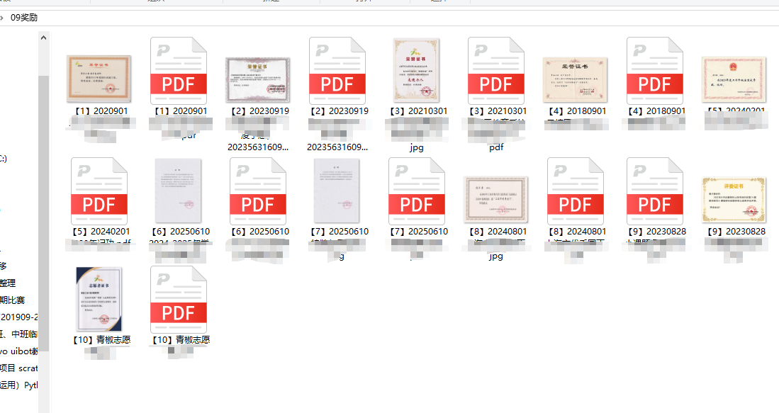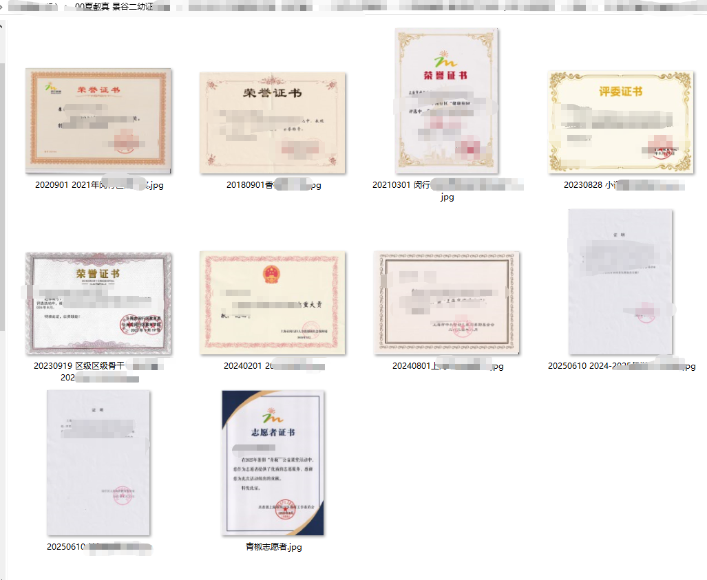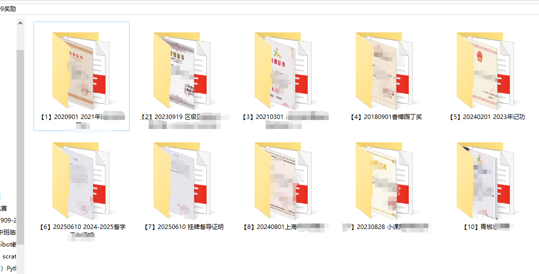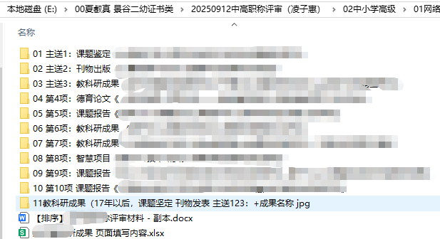 还有部分“教科研成果”(根据图片上的证书名称做文件名,用文件夹名做文件夹,里面可以另外放入word论文报告)