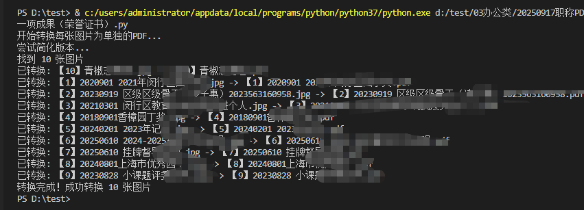 用deepseek编写Python程序,快速将多张图片转为多个同名PDF,并根据文件名转入同名文件夹,大大提高了整理效率。(比用ADOBE,点很多的按钮来转PDF要快很多,只要右击运行两个按钮就可以了。)