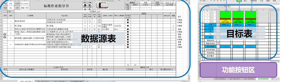 数据源表会按照一定的格式填写,包含基本信息、操作流程、操作的有效时间、无效时间等。点击目标表下方功能按钮区的“新增”按钮时,能够自动将数据源表的信息按格式自动填入目标表中。
