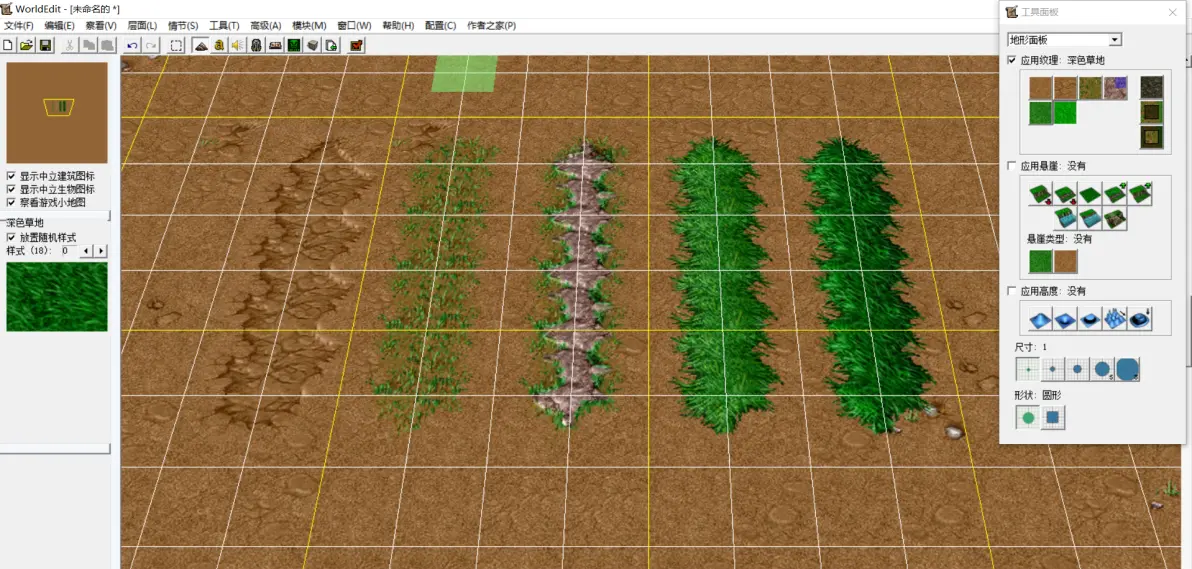 之前的那张图单位太多,每次测试加载都比较慢,所以新建一个最简单的图进行测试。首先我们新建一个尺寸最小的地图。创建完成后,地图会默认显示网格,这可能会影响我们的操作和观察。 点击菜单栏中的 查看 → 栅格 → 选择 无,即可关闭网格,便于后续操作。