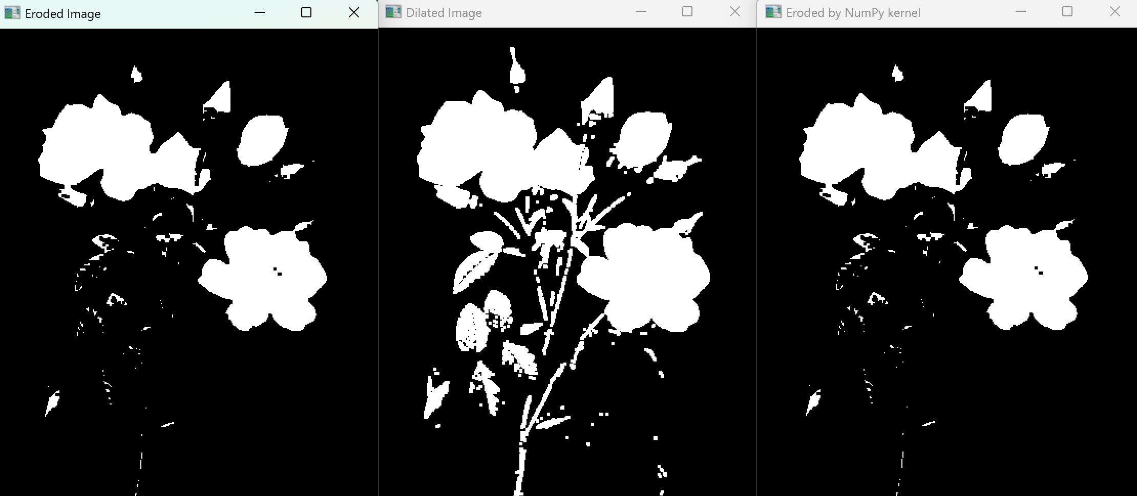 腐蚀会使图像中的前景物体边界向内收缩,可以消除小的白色噪点、分离相邻物体,或减少物体的面积。