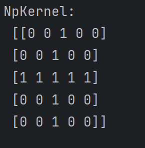 for i in range(5):NpKernel[2, i] = 1NpKernel[i, 2] = 1