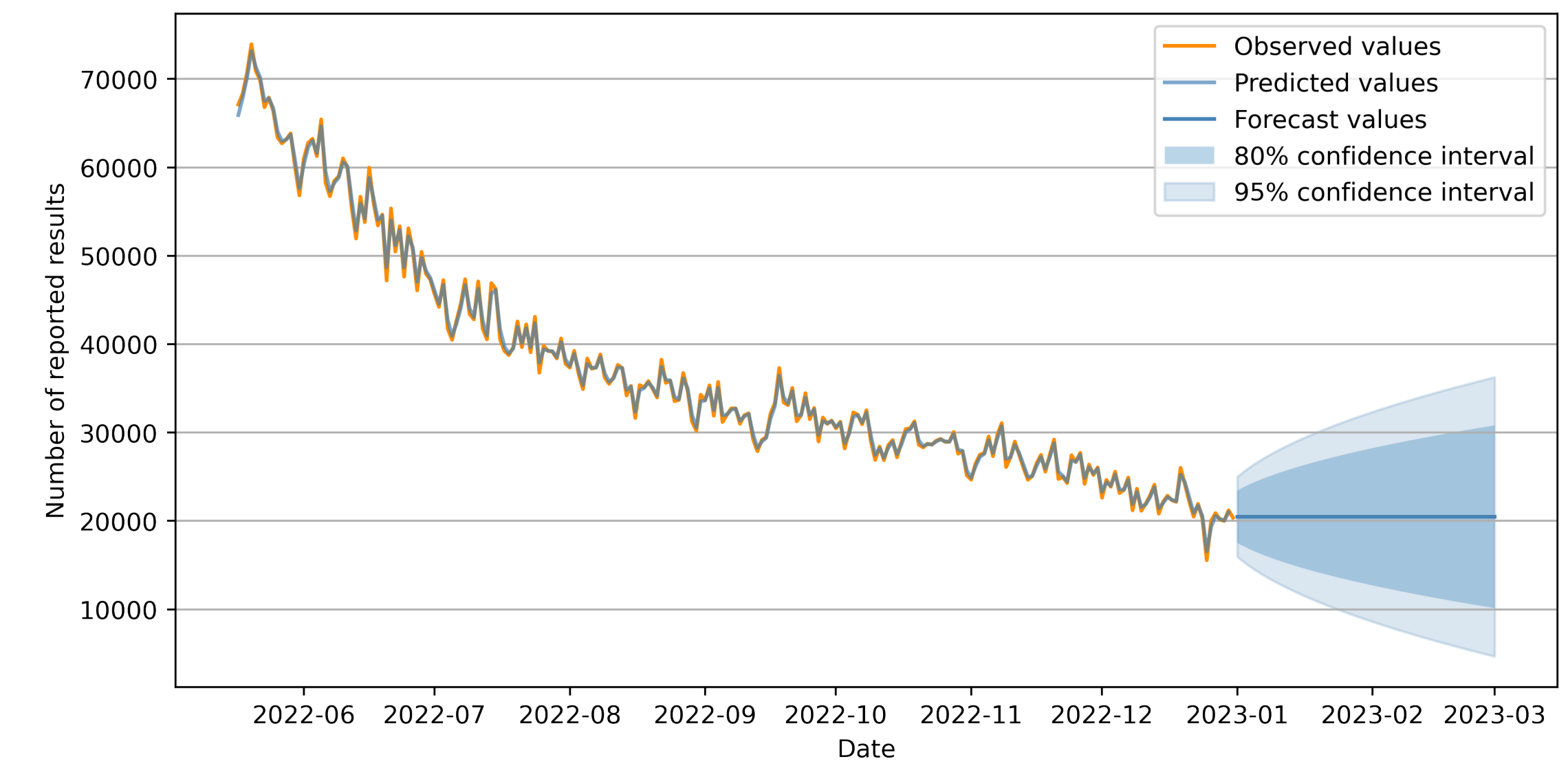 - 最后,将 ARIMA 模型的预测结果与 LSTM 模型的残差预测结果相加,得到报告数量的最终预测结果。