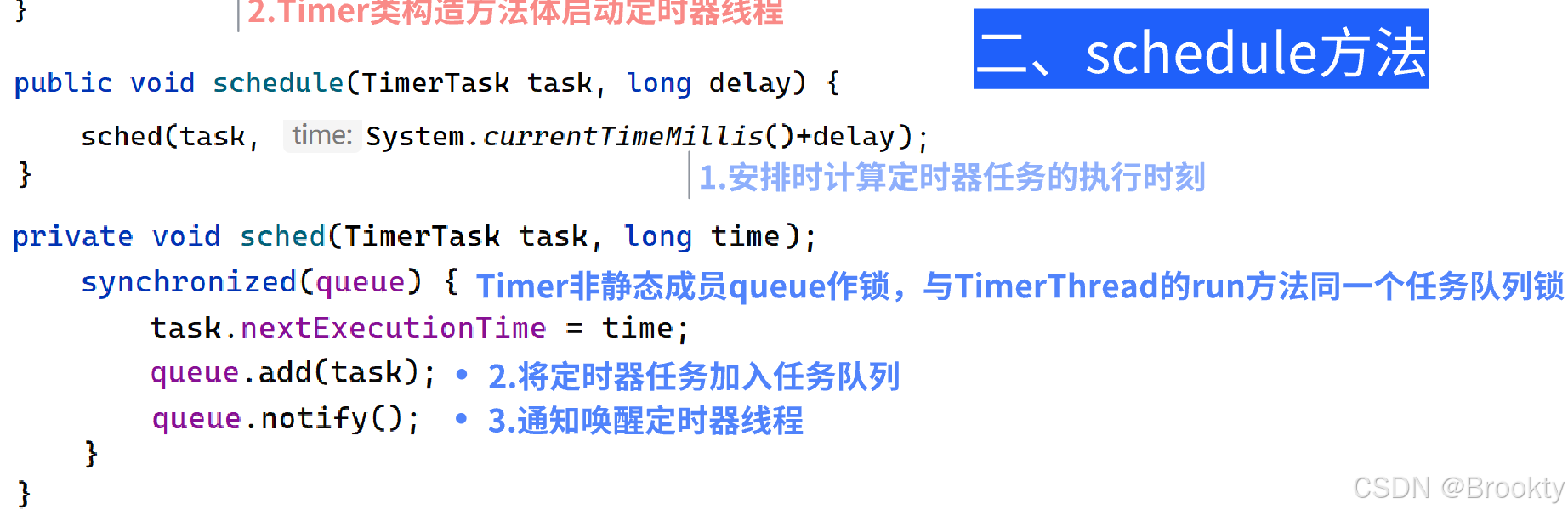 Timer类的非静态方法schedule,调用去安排任务时,以非静态成员任务队列为锁: