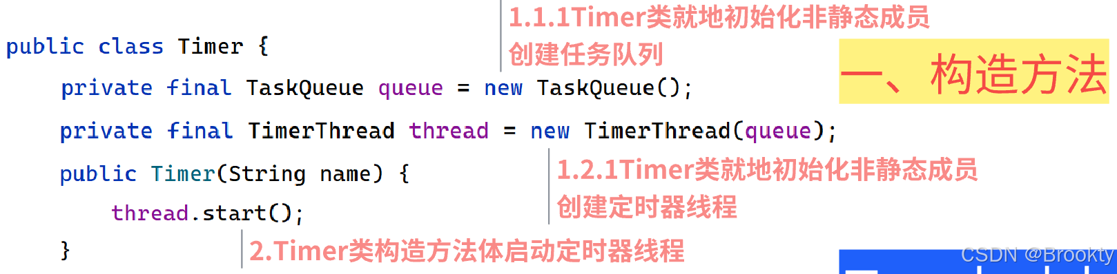 Timer类实例化创建对象,在构造方法里进行 非静态成员就地初始化 和 构造方法体执行 的构造初始化: