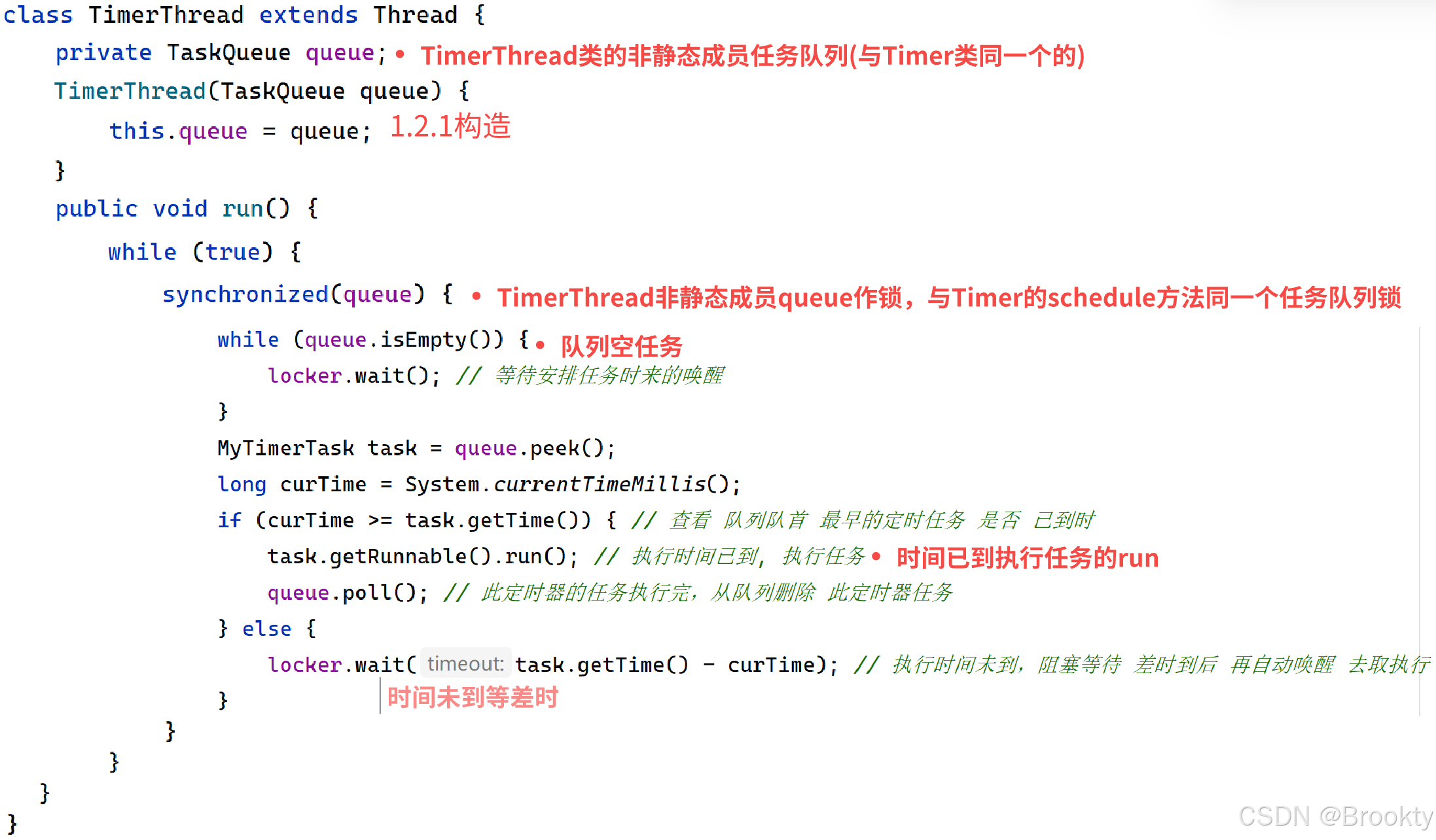 构造方法体中 启动定时器线程 开始持续 对非静态任务队列成员 队列队首 查取执等 最早的定时器任务