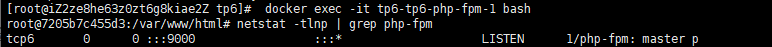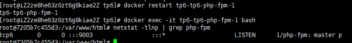 [root@iZ2ze8he63z0zt6g8kiae2Z tp6]# docker exec -it tp6-tp6-php-fpm-1 bash# 在容器内执行,检查PHP-FPM监听端口