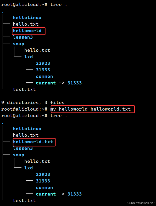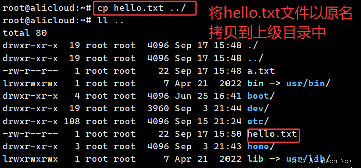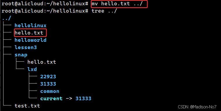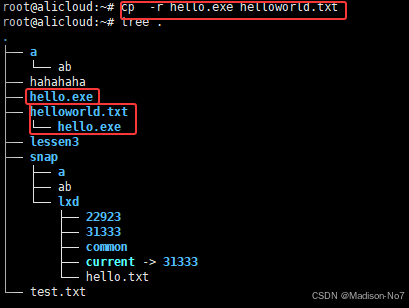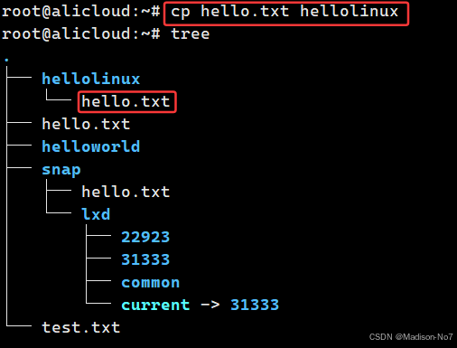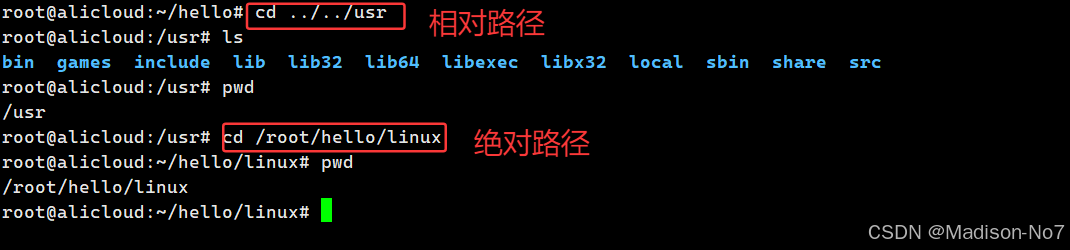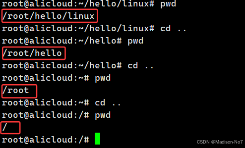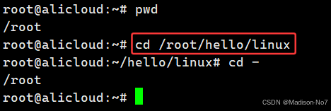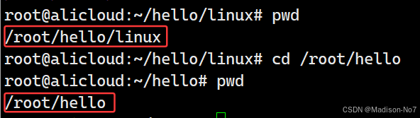 把路径从/root/hello/linux切换到/root/hello。