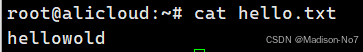 再cat查看文件里面的内容,结果显示helloworld。