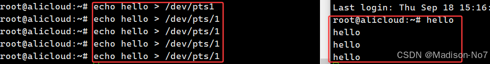 我们可以把终端也理解成一个文件,那我们在终端0中,就可以利用输出重定向先终端1中写入信息,就显示到了终端1上。
