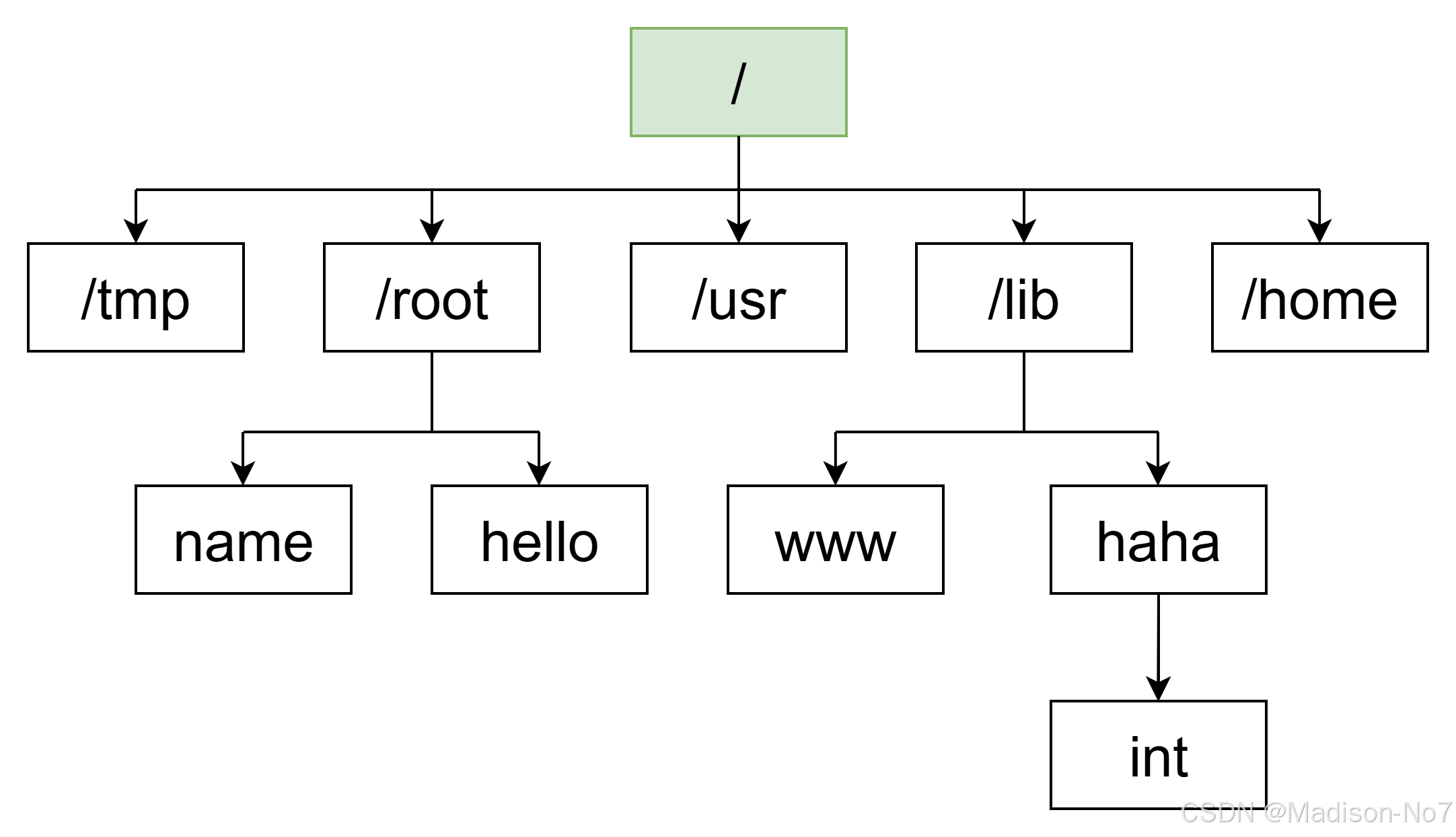 Linux的文件结构,是一颗从根目录/开始的一个多叉树!叶子节点一定是普通文件或者空目录,非叶子节点一定是一个非空目录。