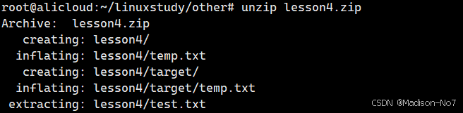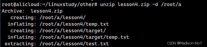 解压到指定目录下:unzip xxx.zip -d 指定目录