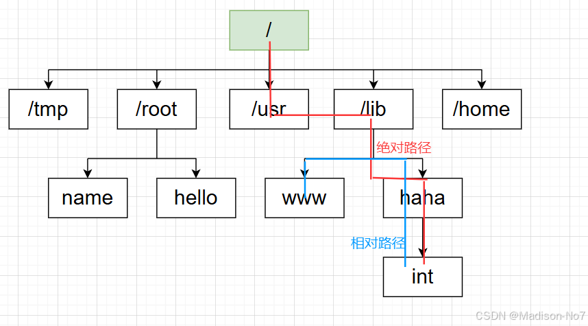 - 相对路径:以非空叶子节点为参照,定位文件。平时操作多