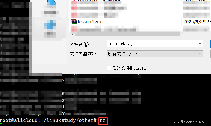 所以:互传文件,要先进行打包压缩,再用rz和sz指令发送和接收压缩包。解压就能得到数据了。