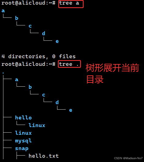 tree命令是一个递归以树状结构显示指定目录的命令。