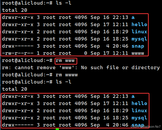 说明:以下所有指令的演示,均在阿里云服务器上。