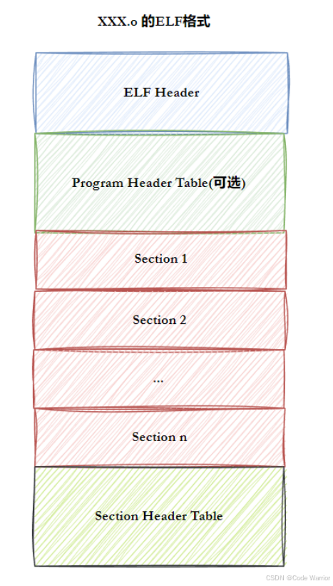 所有 ELF 文件都遵循统一的结构,由四部分组成,各部分分工明确,确保文件能被系统正确解析: