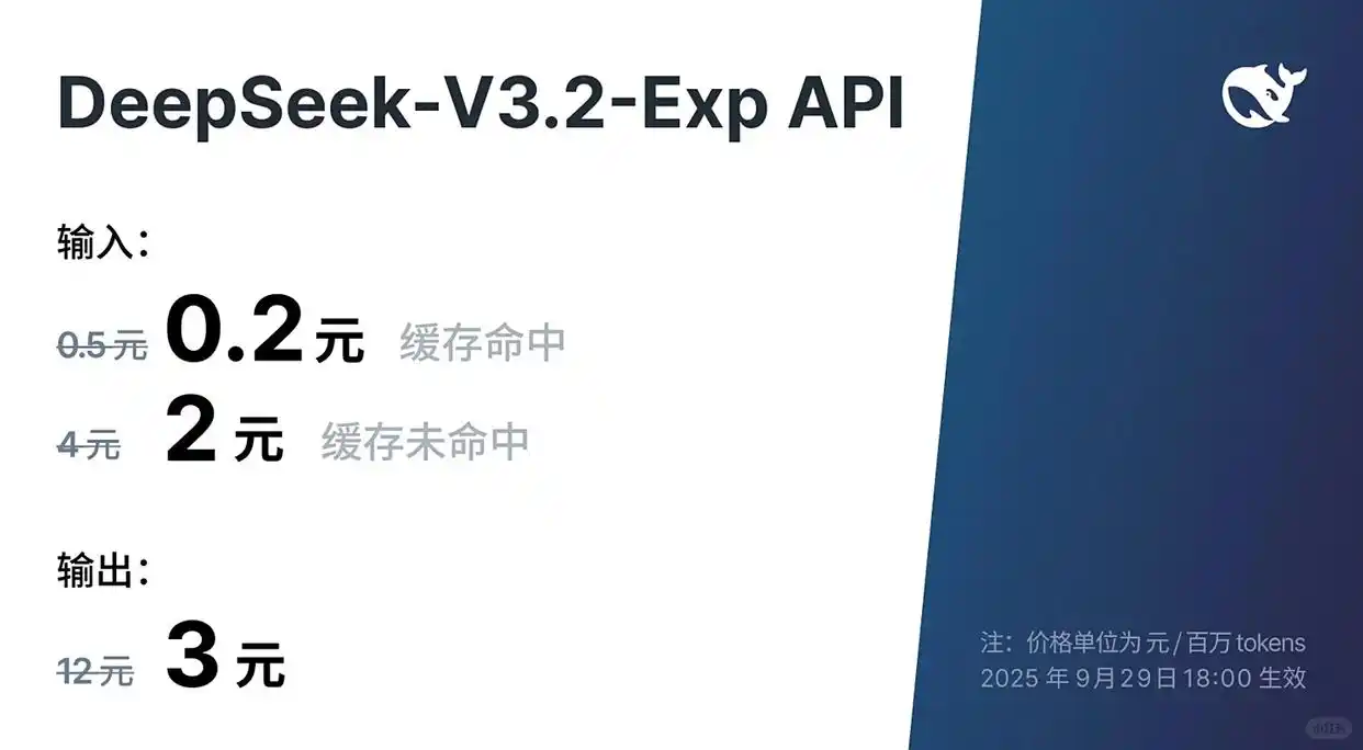 - 使用成本降低:效率的提升最直接的体现就是成本的下降。得益于 DSA,DeepSeek-V3.2 的 API 调用价格降低了超过 50%,使得高性能大模型的应用更加普惠。