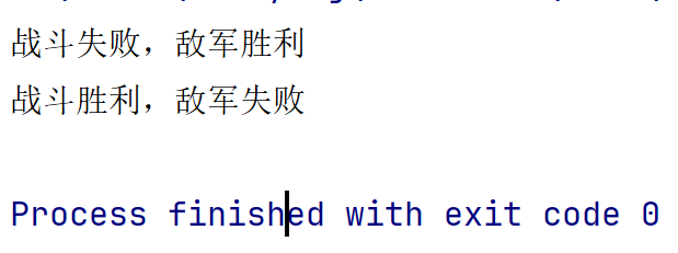 def object_play(Hero, Enemy):if Hero.power > Enemy.power:print('战斗胜利,敌军失败')elif Hero.power < Enemy.power:print('战斗失败,敌军胜利')elif Hero.power == Enemy.power:print('平局')else:print('异常')# 1 英雄一代战机(战斗力60)与敌军战机(战斗力70)对抗。英雄1代战机失败!