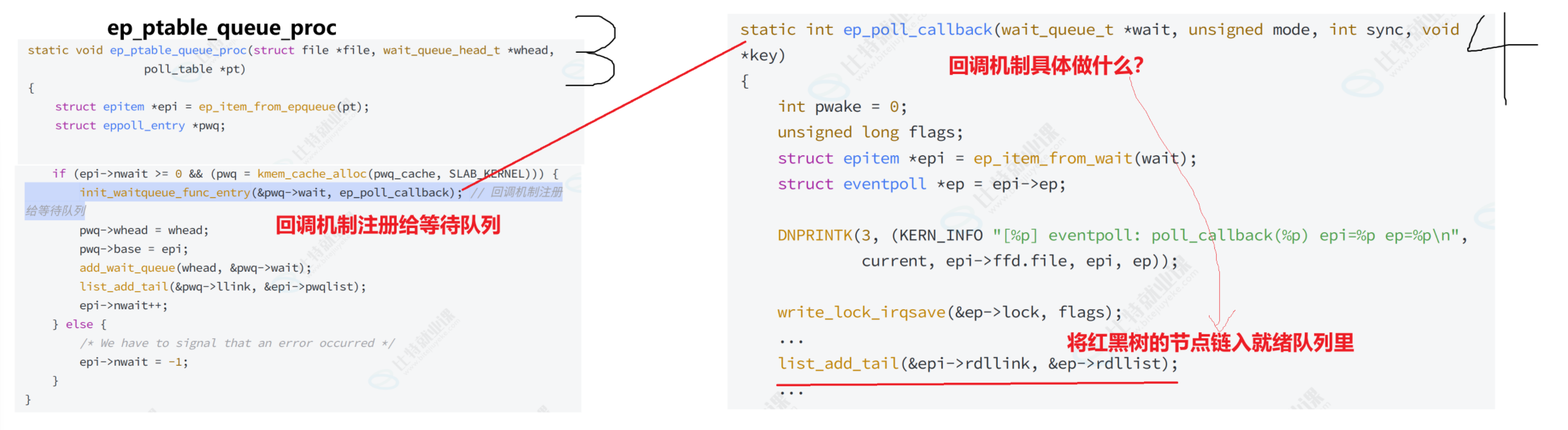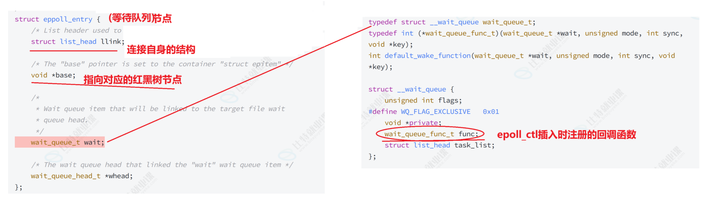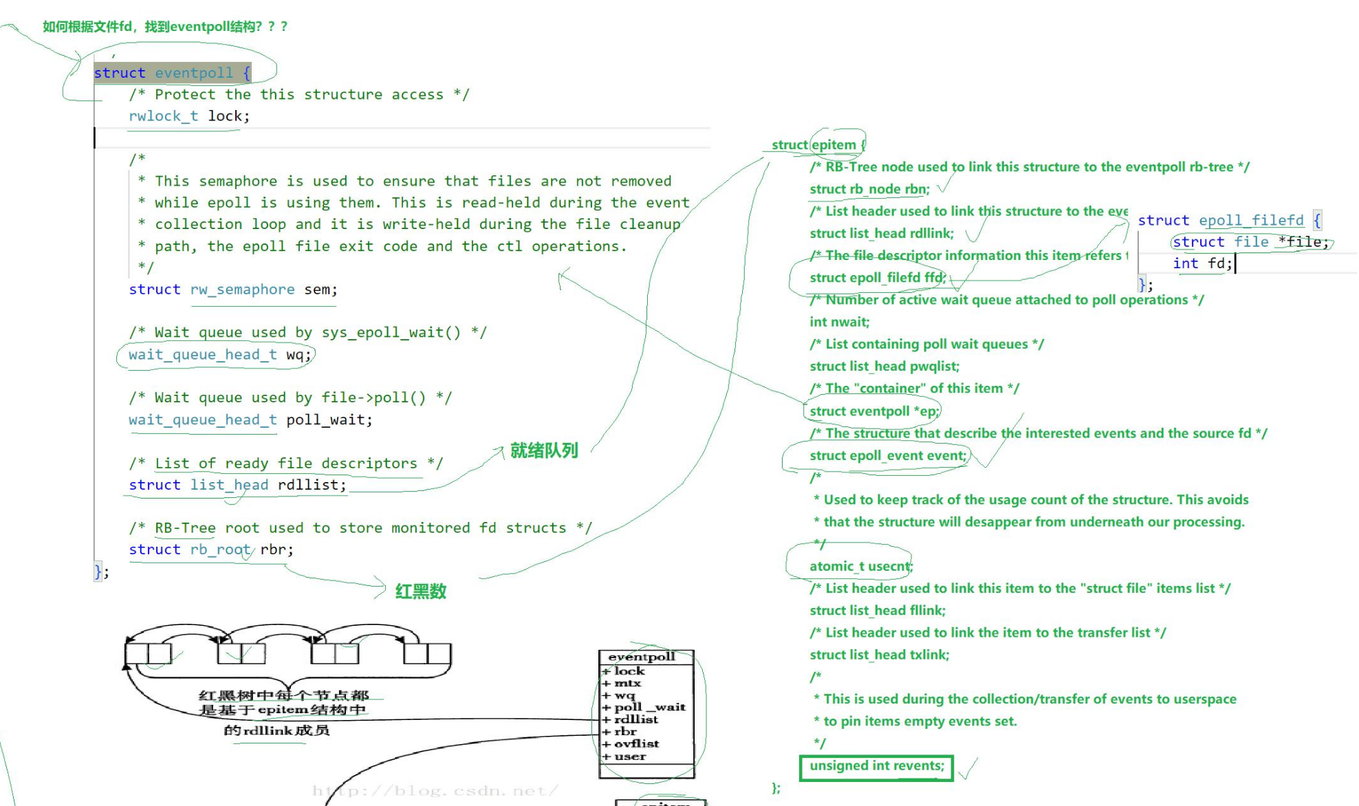 2)rb_tree和就绪队列用的是同一个结构struct epitem