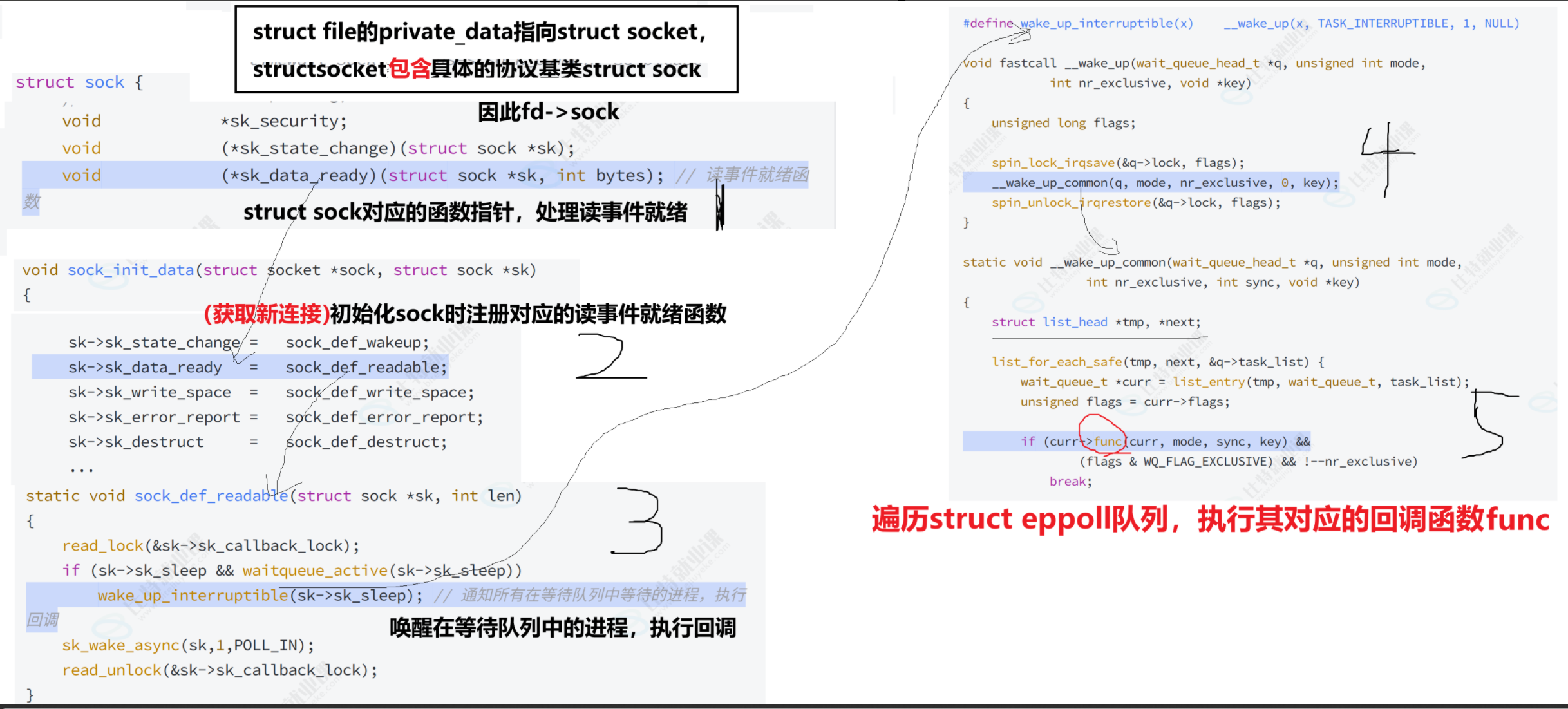 stuct file中的void *private_data指针指向struct event_poll对象(类比TCP中,private_data指向struct socket)