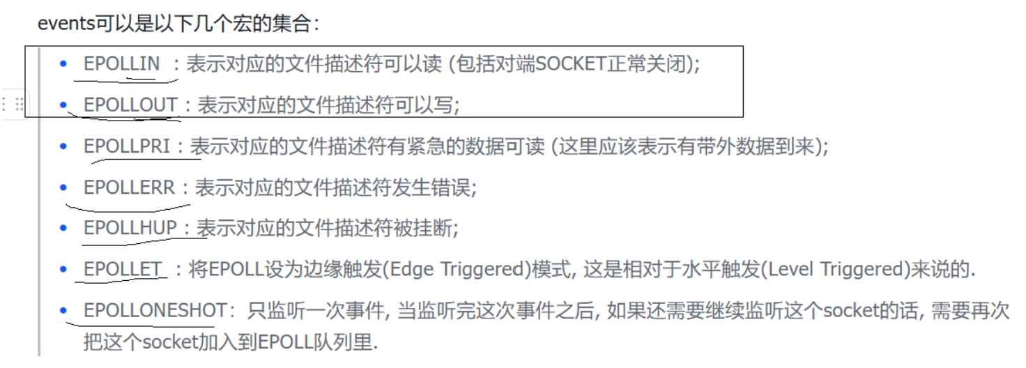 - event:输入型参数,events表示用户告诉内核需要关心的事件