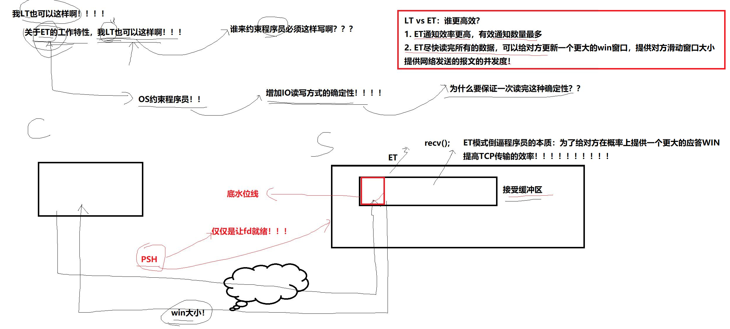 - ET模式倒逼程序员的本质:为给对方在概率上提供一个更大的应答win,提高TCP传输的效率