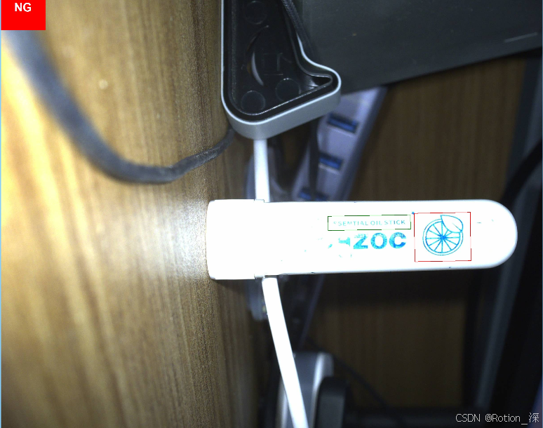 物料上的边框,一个是检测区域,一个是工具结果,OK-绿色边框 NG-红色边框